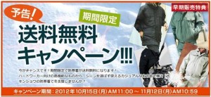 毎度 恒例の 防寒着 早期販売 送料無料キャンペーンが 本日より始まります。