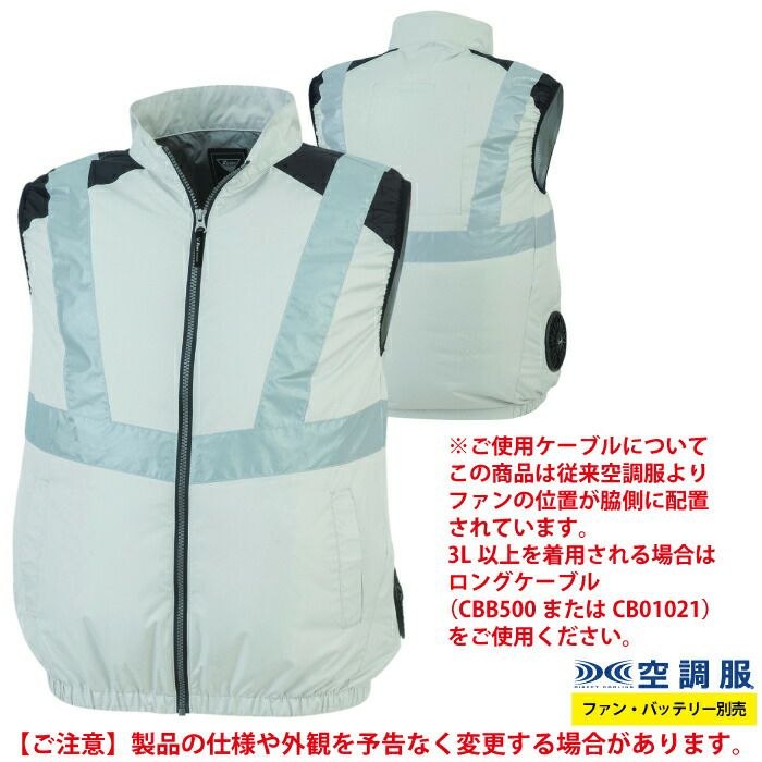 ◇この商品は従来空調服よりファンの位置が脇側に配置されています。3L以上を着用される場合はロングケーブル(CBB500またはCB01021)をご使用ください