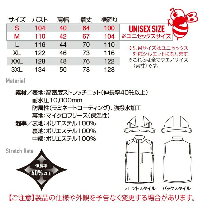 【3264 ストレッチフーディ防寒ベスト】
