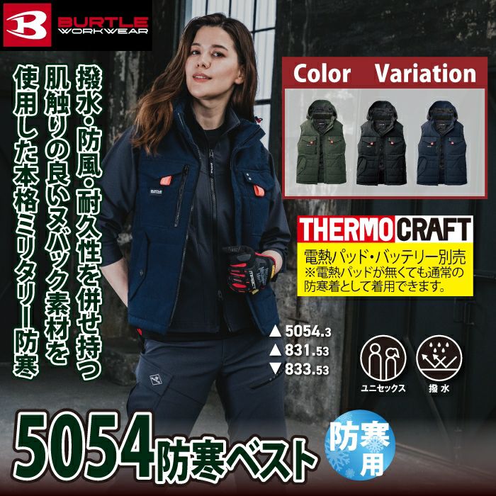 ユニセックス 防風 撥水 バートル BURTLE 作業着 防寒着 2024秋冬新作 5054 防寒ベスト S-XL 作業服 TC500サーモクラフト対応 撥水 防風 保温