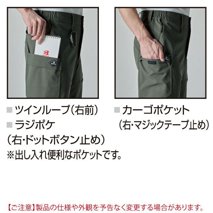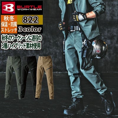ユニセックス ストレッチ バートル BURTLE 作業着 作業ズボン 2024秋冬新作 822 カーゴパンツ S-XXL 作業服 おしゃれ 撥水 防風 保温