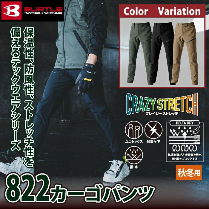 ユニセックス ストレッチ バートル BURTLE 作業着 作業ズボン 2024秋冬新作 822 カーゴパンツ 3XL 作業服 おしゃれ 撥水 防風 保温