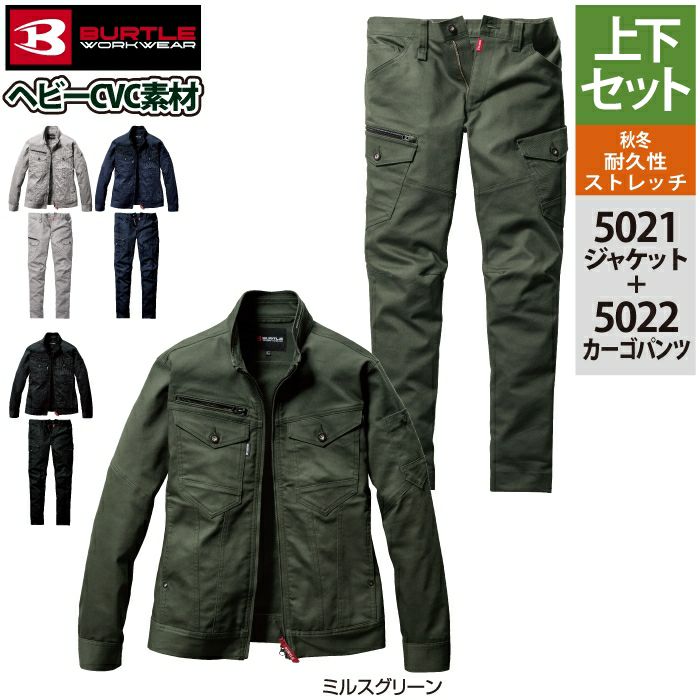バートル BURTLE 作業着 上下セット 5021 ジャケットS-3L と 5022 カーゴパンツ SS-3L 作業ズボン 作業服 おしゃれ 秋冬