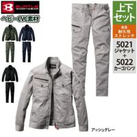 ユニセックス ストレッチ バートル BURTLE 作業着 上下セット 5021 ジャケットS-3L と 5022 カーゴパンツ SS-3L 作業ズボン 作業服 おしゃれ 秋冬