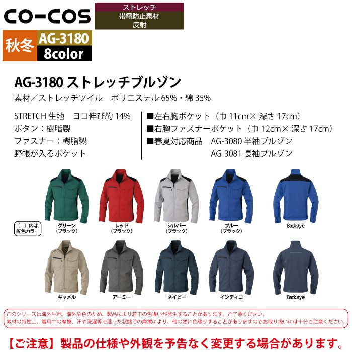 コーコス 作業服 秋冬用 AG-3180 ストレッチブルゾン 3L