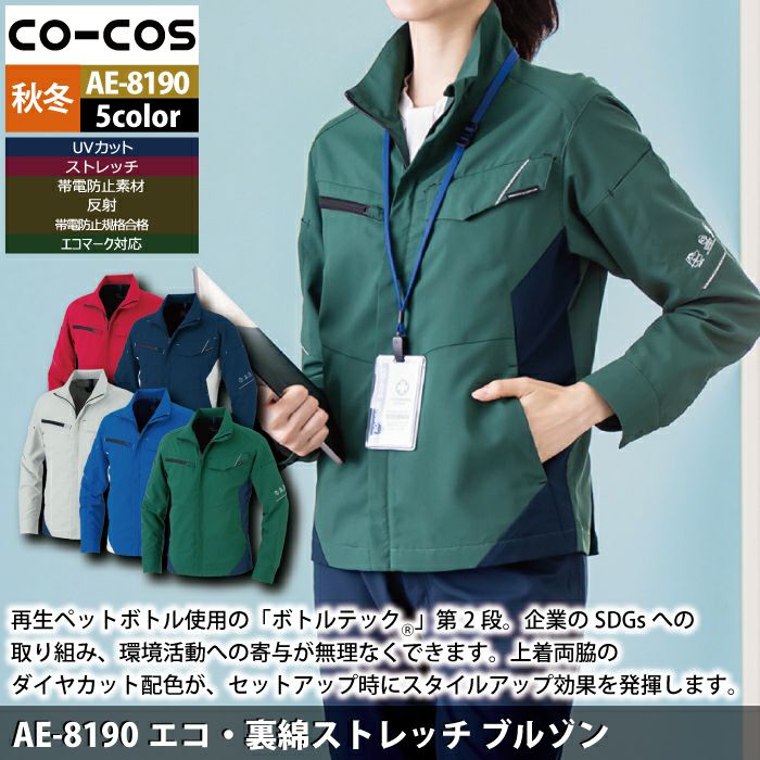 コーコス 作業服 秋冬用 AE-8190 エコ裏綿ストレッチブルゾン SS-LL