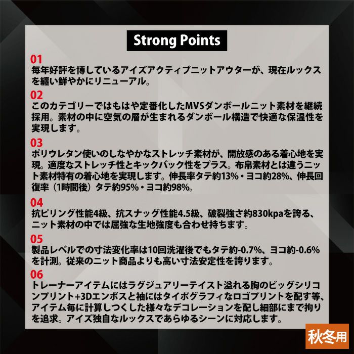 ◇素材:ストレッチMVSダンボールニット(310g/m2 ポリエステル80%・レーヨン15%・ポリウレタン5%)