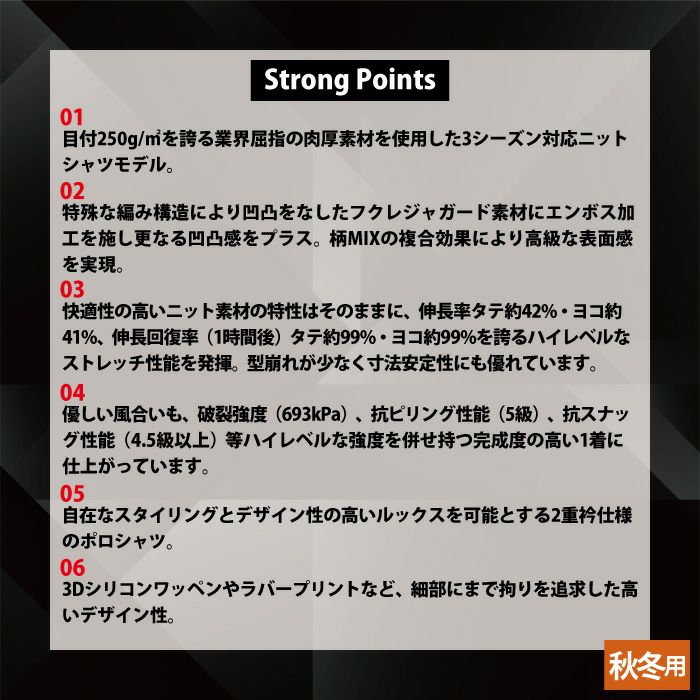 ◇目付250g/m2の肉厚素材を使用した3シーズン対応ニットシャツモデル