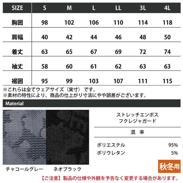 ◇素材:ストレッチエンボスフクレジャガード(250g/m2 ポリエステル95%・ポリウレタン5%)