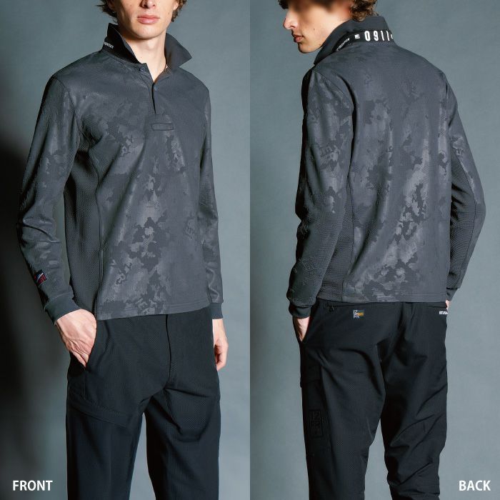【911 ジャガードエンボスストレッチ長袖ポロシャツ】