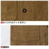 ◇機能:配色台衿・ブランドネーム・オリジナルドットボタン・フラップ裏配色・補強布・配色衿裏・胸ペン差し・袖ペン差し・後ろスリット・袖アジャストボタン・配色内ポケット・ボタンホールステッチ