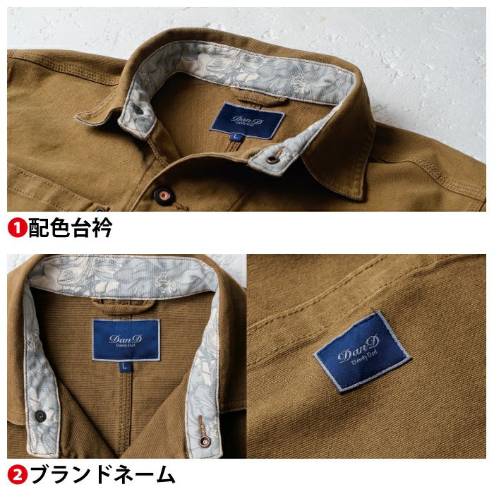 ◇機能:配色台衿・ブランドネーム・オリジナルドットボタン・フラップ裏配色・補強布・配色衿裏・胸ペン差し・袖ペン差し・後ろスリット・袖アジャストボタン・配色内ポケット・ボタンホールステッチ
