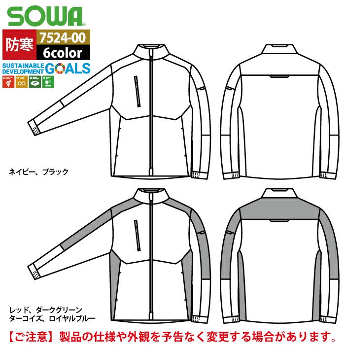 桑和 SOWA 作業服 作業着 作業ズボン 桑和 SOWA 作業服 防寒着 7524-00 防寒ブルゾン 4L 秋冬用