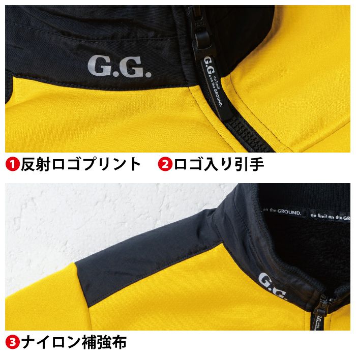 ◇機能:反射ロゴプリント・ロゴ入り引手・ナイロン補強布・胸ファスナーポケット(野帳が入る)・袖ペン差し・両側内ポケット(野帳が入る)・両脇ポケット・袖口ゴム・ウエストゴム仕様・反射テープ・裏ボア