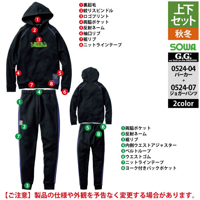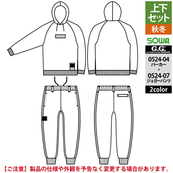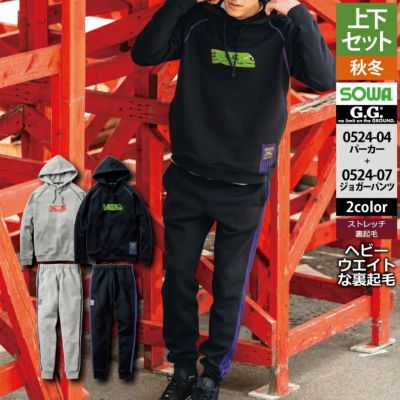 桑和 SOWA 作業服 上下セット 1524-04 パーカー S-3L と 1524-07 ジョガーパンツ S-3L 作業着 作業ズボン 秋冬用