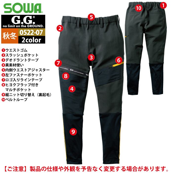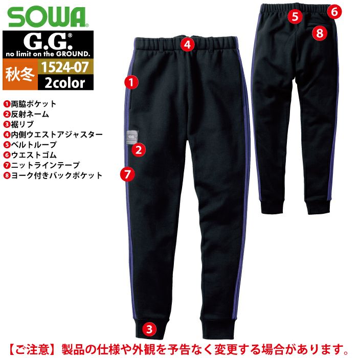 桑和 SOWA 作業服 作業着 作業ズボン 桑和 SOWA 作業服 作業ズボン 0522-07 レギンスジョガーパンツ S-LL 秋冬用