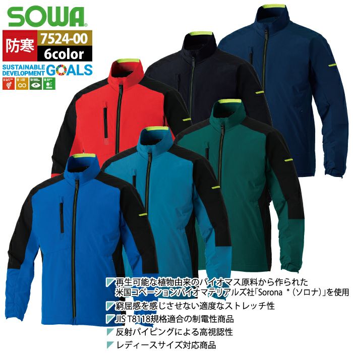 桑和 SOWA 作業服 作業着 作業ズボン 桑和 SOWA 作業服 防寒着 7524-00 防寒ブルゾン 6L 秋冬用