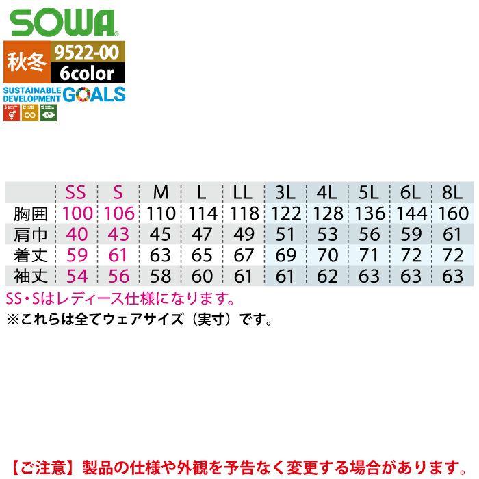 桑和 SOWA 作業服 作業着 作業ズボン 桑和 SOWA 作業服 9522-00 長袖ブルゾン SS-LL 秋冬用