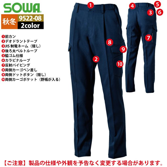 桑和 SOWA 作業服 作業着 作業ズボン 桑和 SOWA 作業服 作業ズボン 9522-08 カーゴパンツ 3L 秋冬用