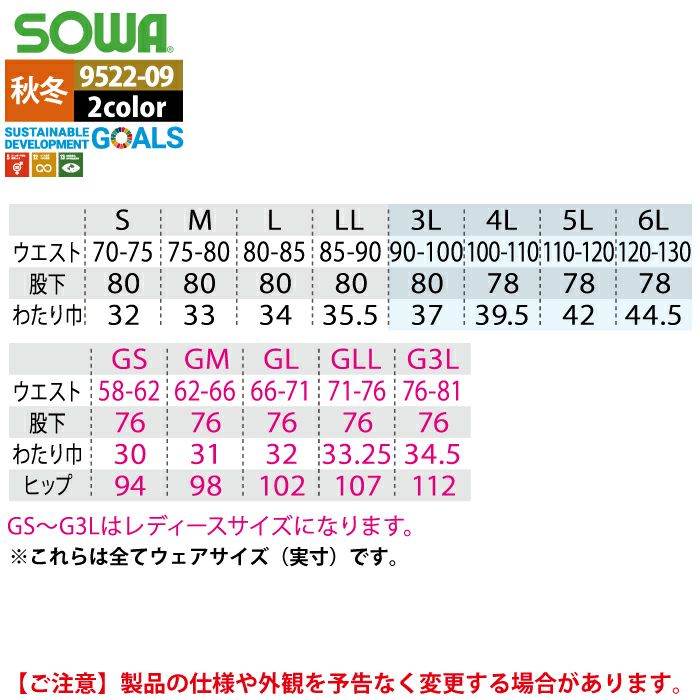 桑和 SOWA 作業服 作業着 作業ズボン 桑和 SOWA 作業服 作業ズボン 9522-09 スラックス 6L 秋冬用