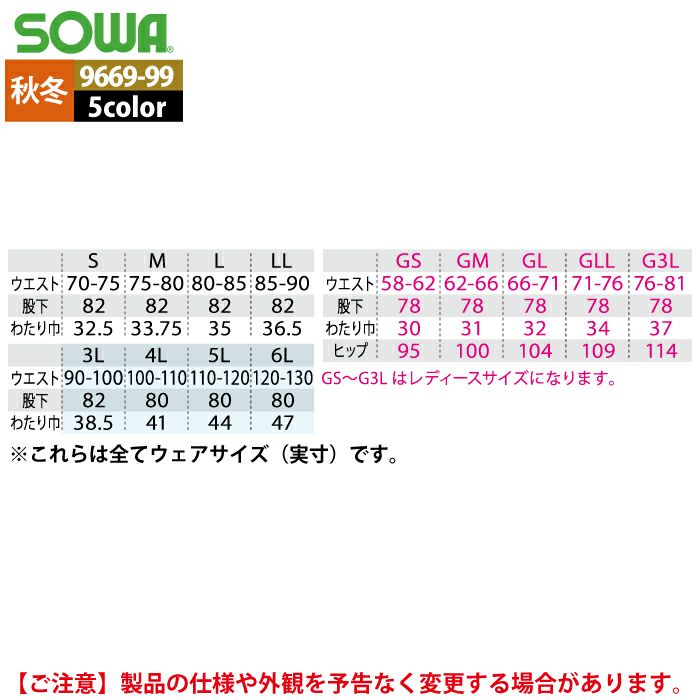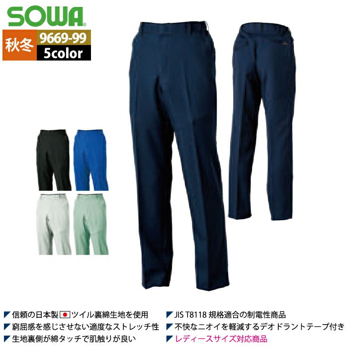 桑和 SOWA 作業服 作業着 作業ズボン 桑和 SOWA 作業服 作業ズボン 9669-99 スラックス GS-LL 秋冬用