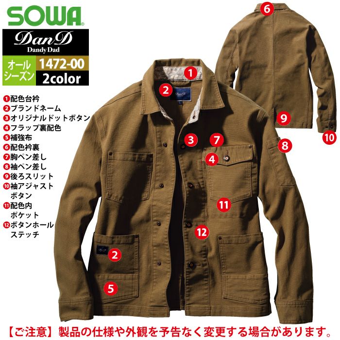 桑和 SOWA 作業服 作業着 作業ズボン 桑和 SOWA 作業服 1472-00 長袖カバーオール S-LL オールシーズン