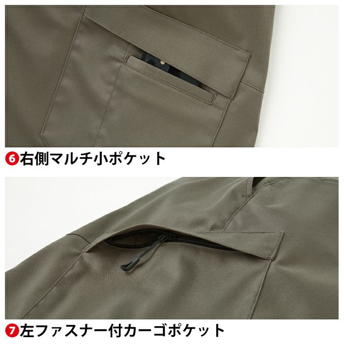 ◇機能:右脇コインポケット・右側マルチ小ポケット・左ファスナー付カーゴポケット・カラビナループ・消臭テープ・膝ダーツ・反射テープ・ストレッチベルト・JIS-T8118適合商品