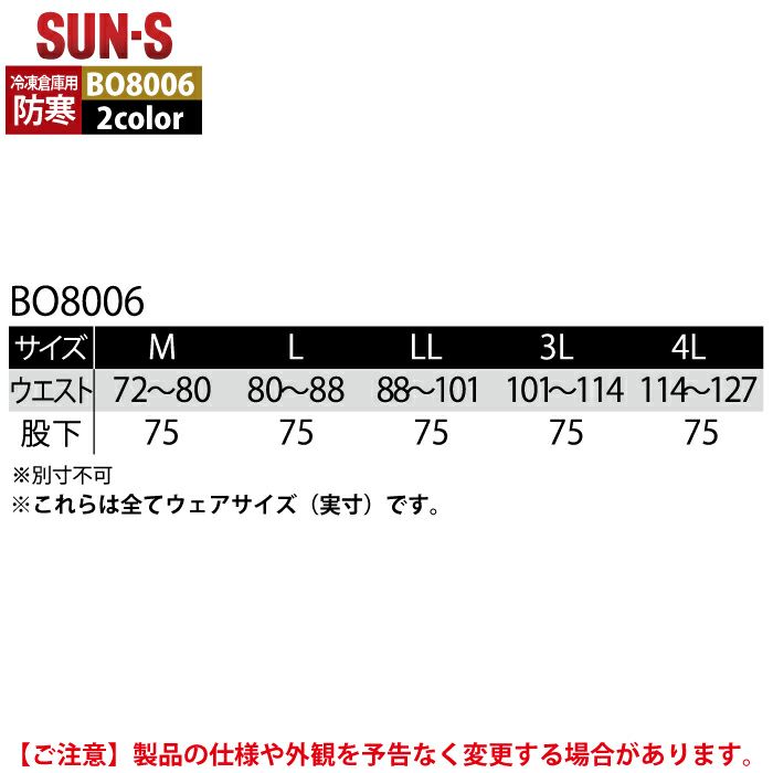 作業服 作業着 作業ズボン サンエス 作業服 防寒着 BO8006 冷凍倉庫用防寒パンツ M-LL 秋冬 作業ズボン 作業着