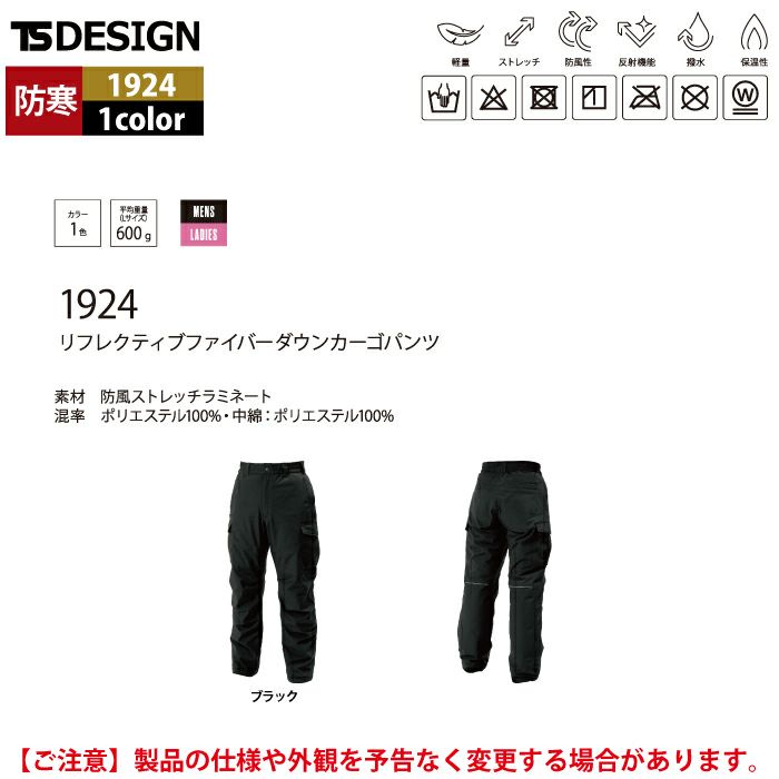 藤和 TSDESIGN 作業服 作業着 作業ズボン 藤和 TSDESIGN 作業服 防寒着 1924 リフレクティブファイバーダウンカーゴパンツ S-LL 秋冬 作業着 作業ズボン