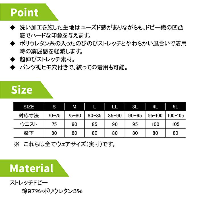 ◇素材:ストレッチドビー(伸長率25%) 丈夫で肉厚なストレッチ素材