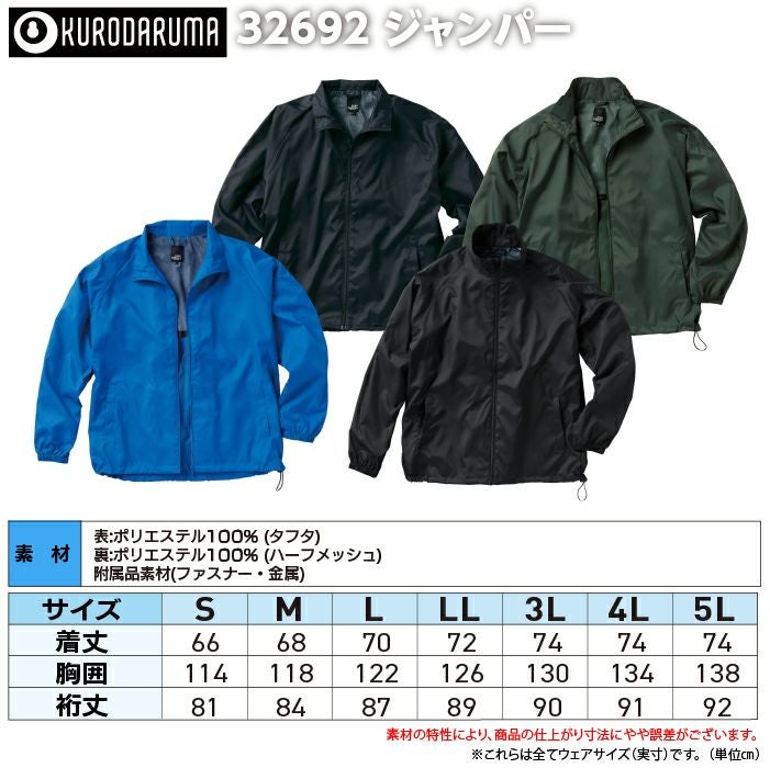 作業服 作業着 クロダルマ 作業服 32692 ジャンパー S-LL 秋冬用 作業着