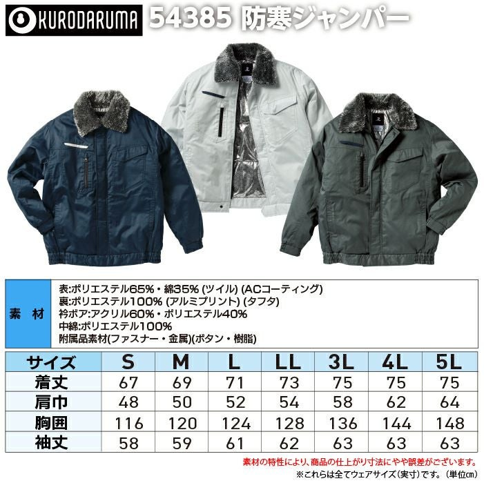 作業服 作業着 クロダルマ 作業服 防寒着 54385 防寒ジャンパー 3L-5L 秋冬用 作業着