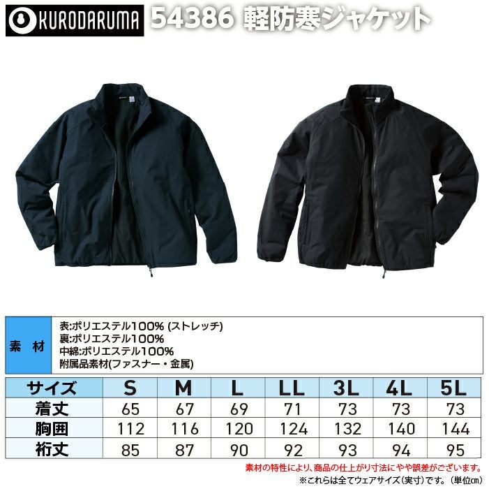 作業服 作業着 クロダルマ 作業服 防寒着 54386 軽防寒ジャケット 3L-5L 秋冬用 作業着