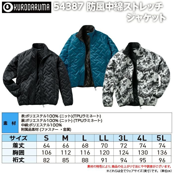 作業服 作業着 クロダルマ 作業服 防寒着 54387 防風中綿ストレッチジャケット 3L-5L 秋冬用 作業着