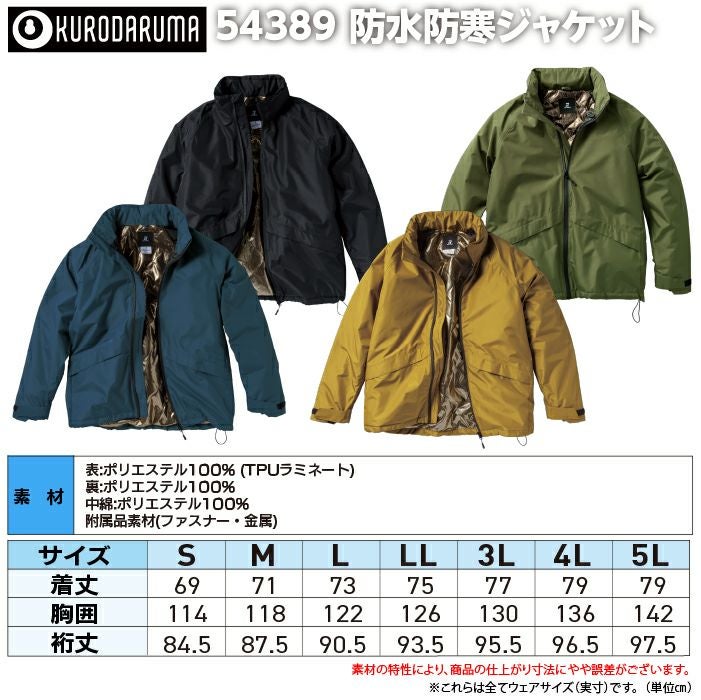 作業服 作業着 クロダルマ 作業服 防寒着 54389 防水防寒ジャケット 3L-5L 秋冬用 作業着