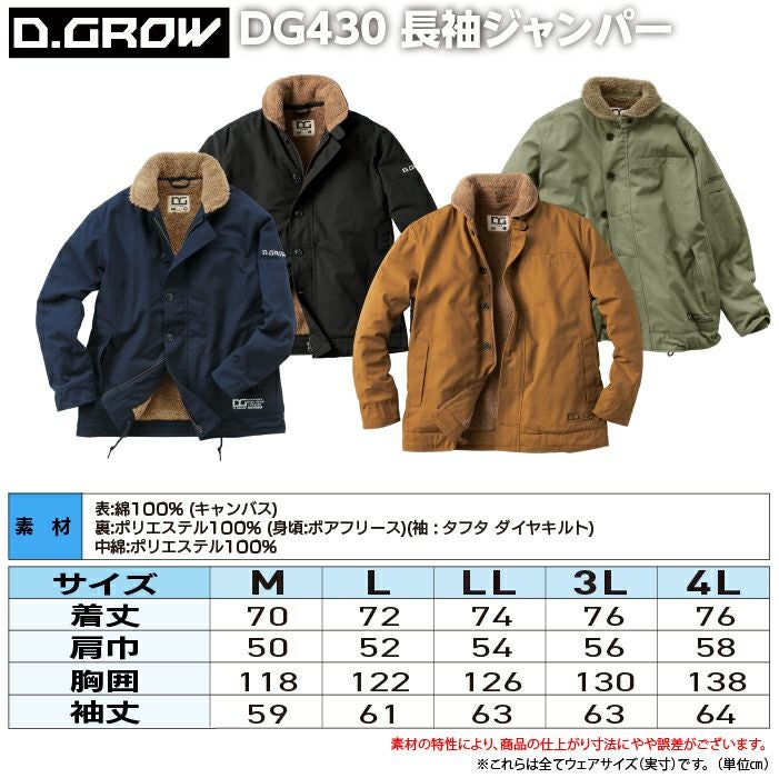 作業服 作業着 クロダルマ 作業服 DG430 長袖ジャンパー M-LL 秋冬用 作業着