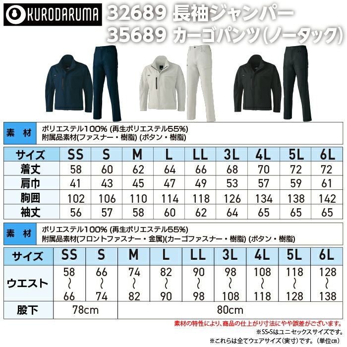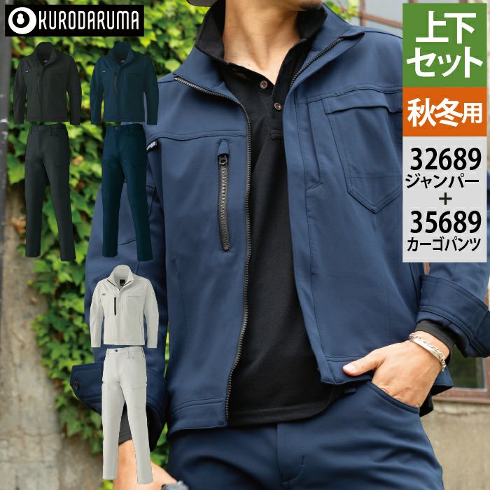 作業服 作業着 作業ズボン クロダルマ 作業服 上下セット 32689 長袖ジャンパー と 35689 カーゴパンツ 秋冬用 作業着 作業ズボン