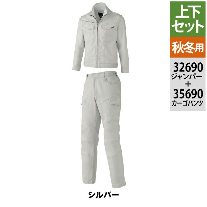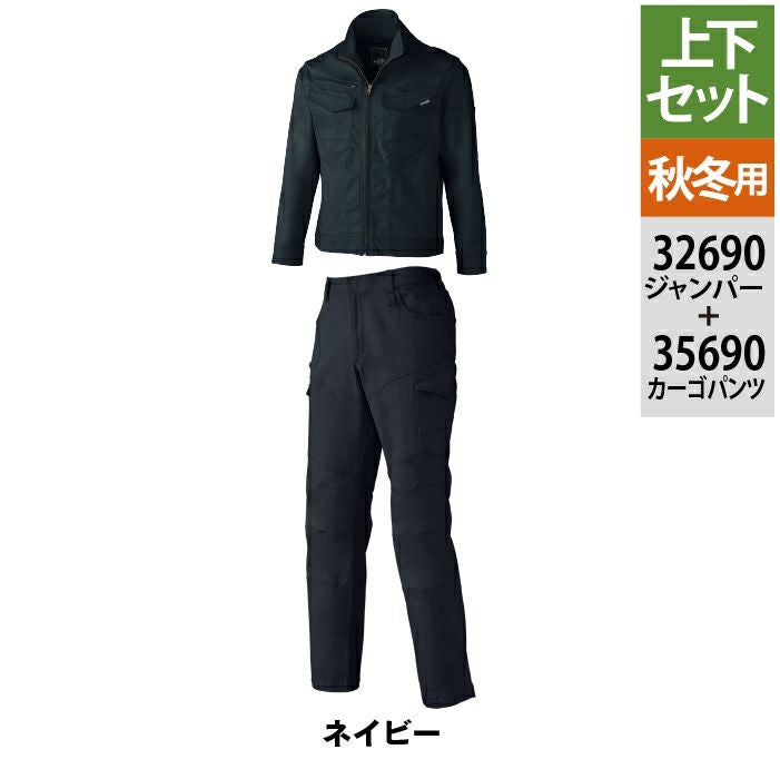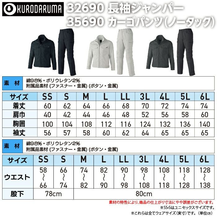 作業服 作業着 作業ズボン クロダルマ 作業服 上下セット 32690 長袖ジャンパー と 35690 カーゴパンツ 秋冬用 作業着 作業ズボン