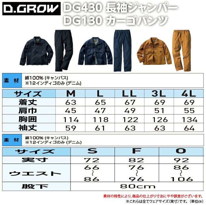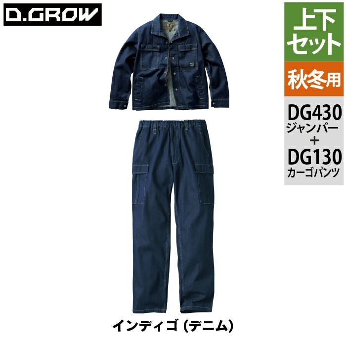 作業服 作業着 作業ズボン クロダルマ 作業服 上下セット DG430 長袖ジャンパー と DG130 カーゴパンツ 秋冬用 作業着 作業ズボン
