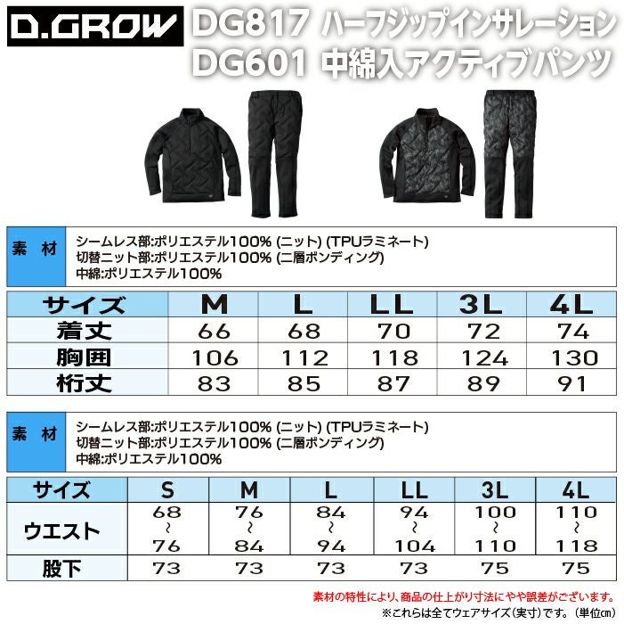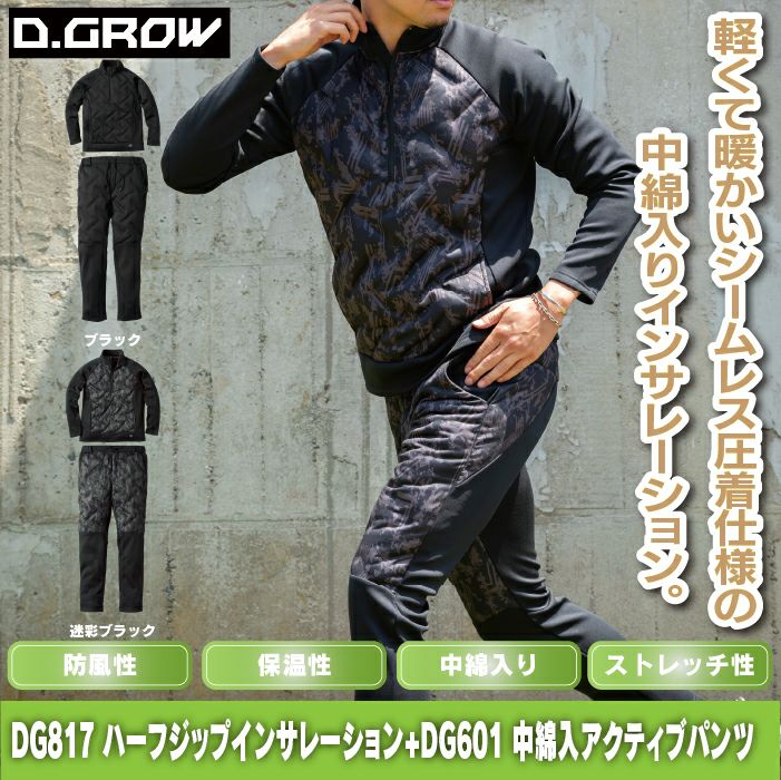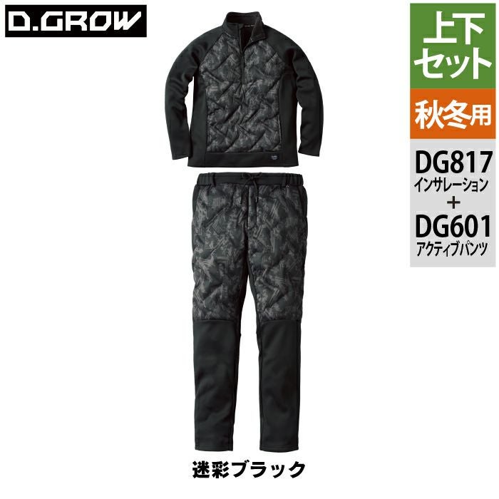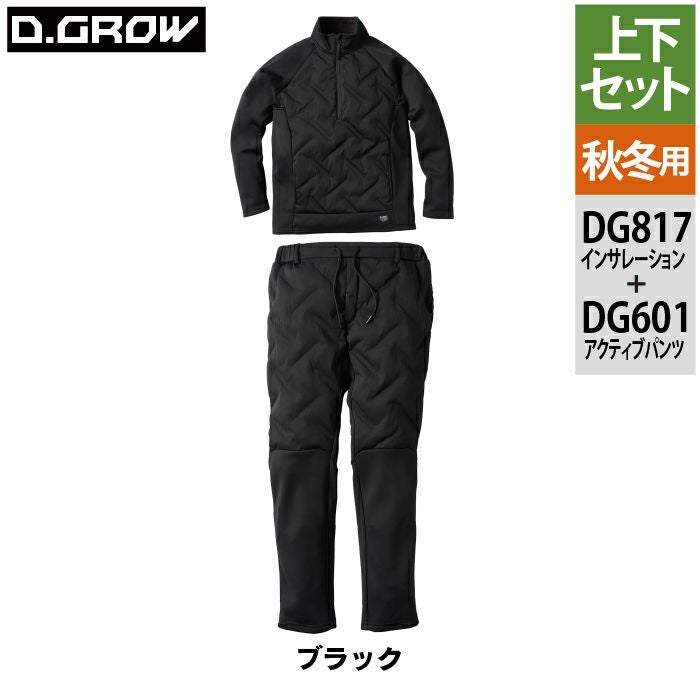 作業服 作業着 作業ズボン クロダルマ 作業服 上下セット DG817 ハーフジップインサレーション と DG601 中綿入アクティブパンツ 秋冬用 作業着 作業ズボン