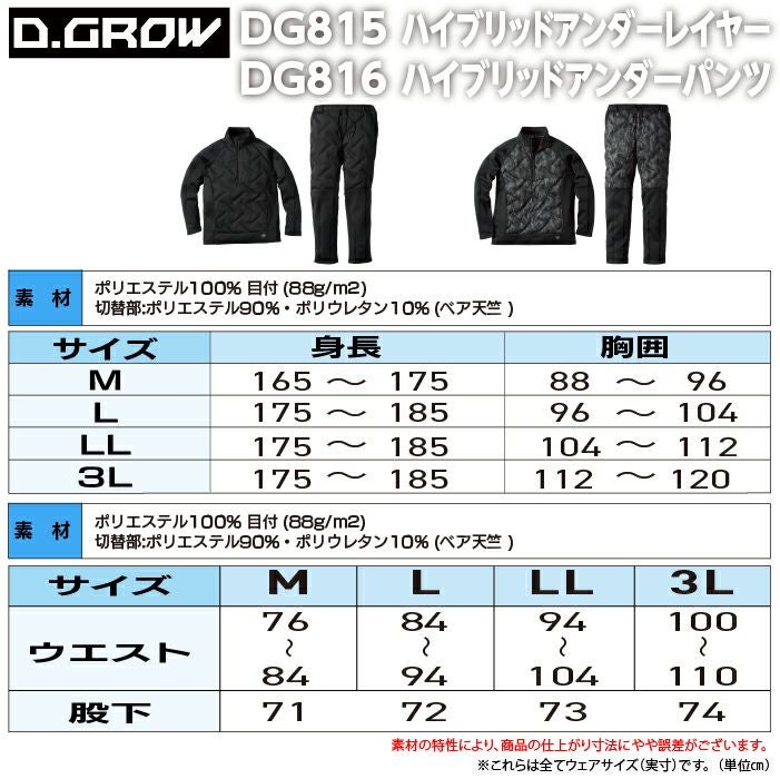 作業服 作業着 作業ズボン クロダルマ 作業服 上下セット DG815 ハイブリッドアンダーレイヤー と DG816 ハイブリッドアンダーパンツ 秋冬用 作業着 インナー
