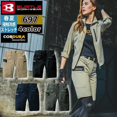 バートル BURTLE 作業着 作業ズボン 2024春夏新作 697 ショートカーゴパンツ 3XL 作業服 おしゃれ コーデュラ 接触冷感 UV