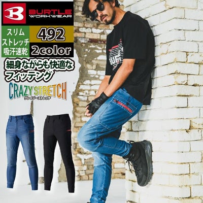 ユニセックス ストレッチ バートル BURTLE 作業着 作業ズボン 2024春夏新作 492 ジョガーカーゴパンツ S-XXL 吸汗速乾 テーパード ストレッチ