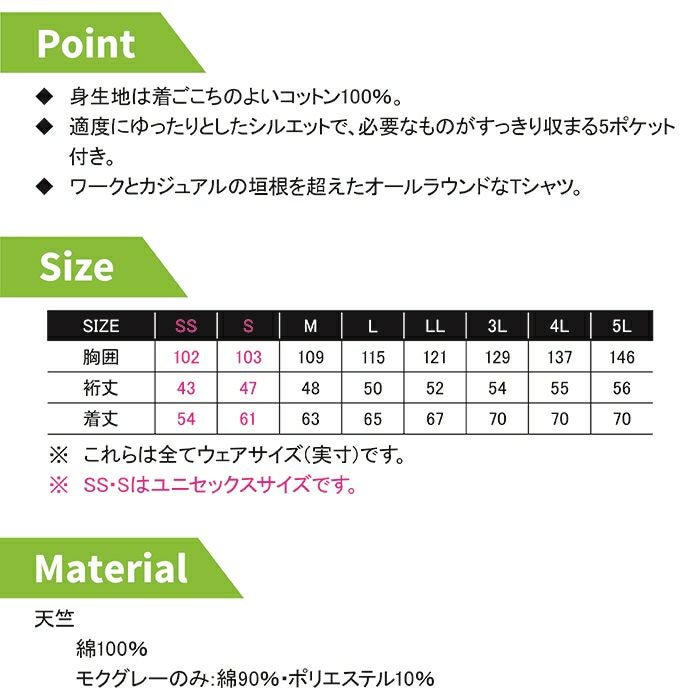 ポイント消化 コーコス 作業服 春夏用 G-947 5ポケット半袖Tシャツ SS-LL