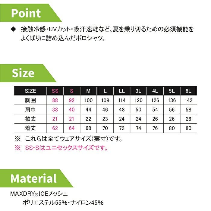 ポイント消化 コーコス 作業服 春夏用 G-1687 ICE冷感半袖ポロシャツ SS-LL