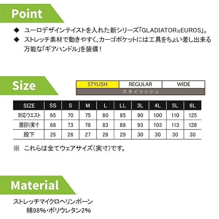 ポイント消化 コーコス 作業服 オールシーズン GA-3935 ストレッチマイクロヘリンボーンカーゴパンツ SS-LL
