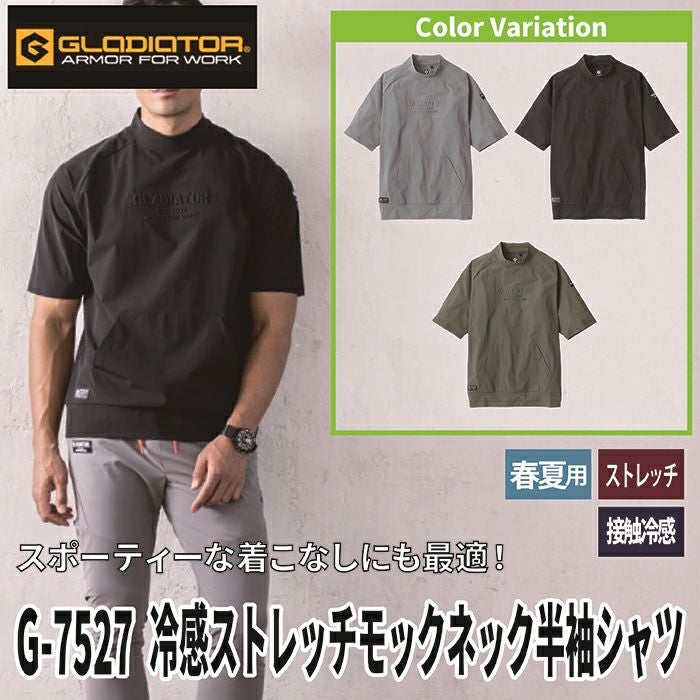 ポイント消化 コーコス 作業服 春夏用 G-7527 冷感ストレッチモックネック半袖シャツ XS-XL