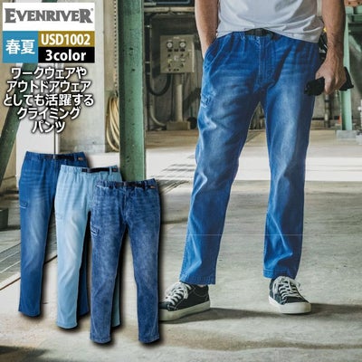イーブンリバー EVENRIVER 作業服 作業ズボン USD1002 ライトデニムクライミングパンツ M-3L 春夏 作業着