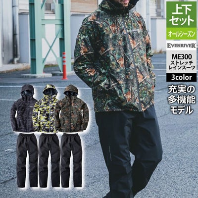 イーブンリバー EVENRIVER 作業服 ME300 ストレッチレインスーツ M-5L オールシーズン 作業着