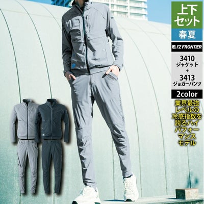 アイズフロンティア 作業服 上下セット 3410 アイスフィールストレッチワークジャケットS-3L と 3413 アイスフィールストレッチジョガーパンツ SS-3L 春夏用